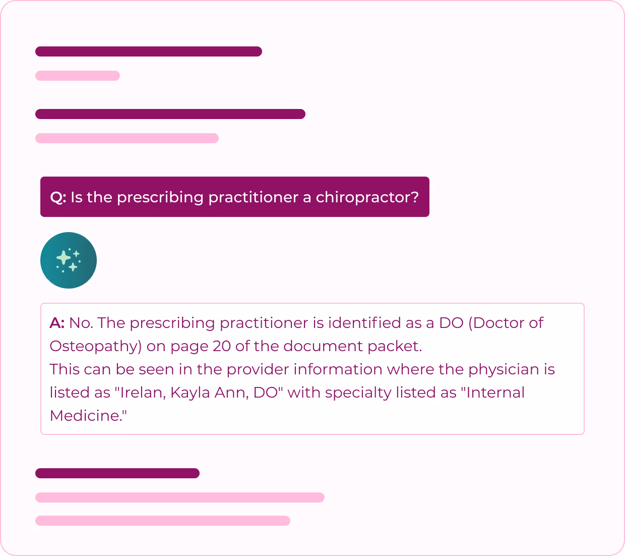 Built to be the ultimate advocate for your reimbursement team. AI provides comprehensive documentation and transparent reasoning to defend claims during audits, strengthen appeals, and demonstrate compliance accuracy, helping accelerate processing and minimize write-offs.